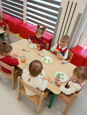 Mikołaj przyniósł ze sobą upominki, które pomocnice wręczyły każdemu maluchowi. Aby jeszcze bardziej uczcić ten dzień, przygotowaliśmy słodki poczęstunek, a dzieci zjadły go po spotkaniu z wyjątkowym gościem.