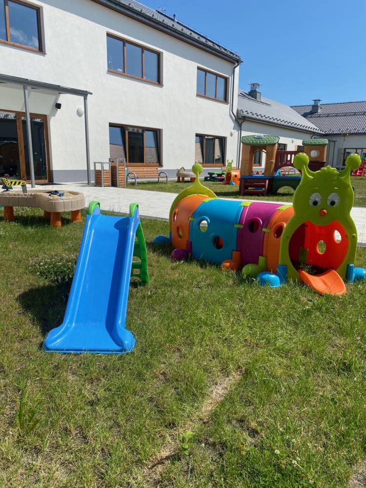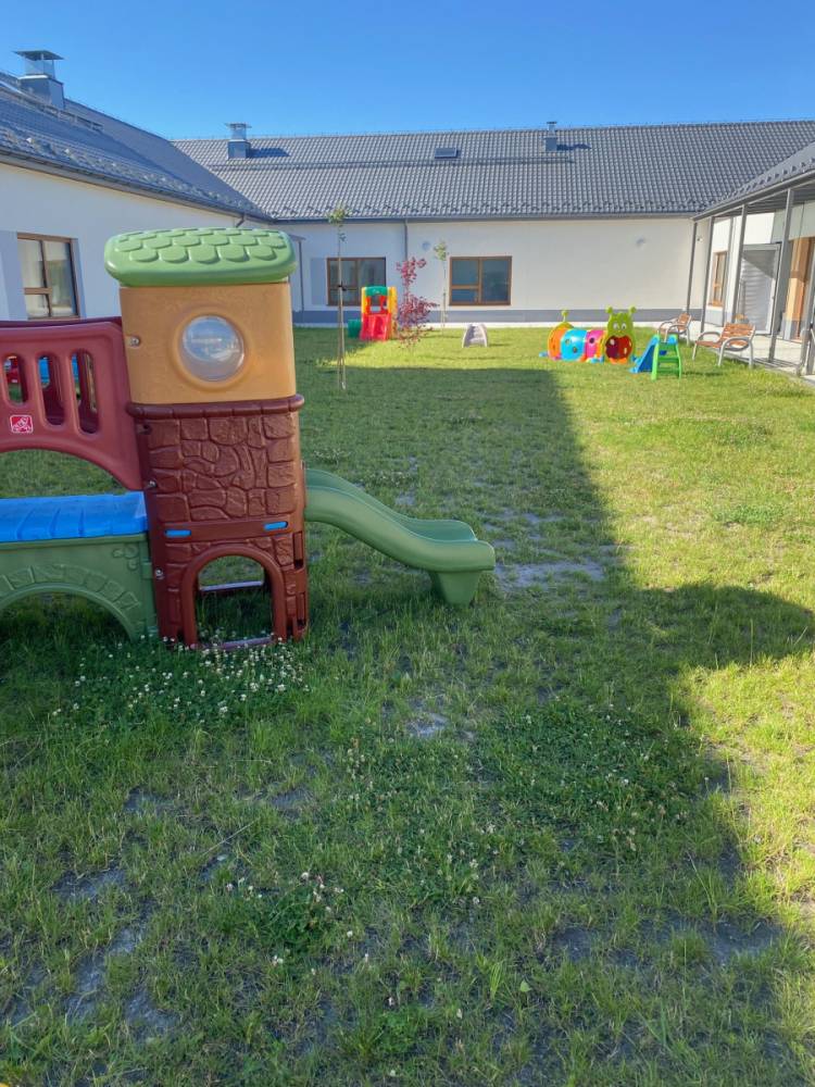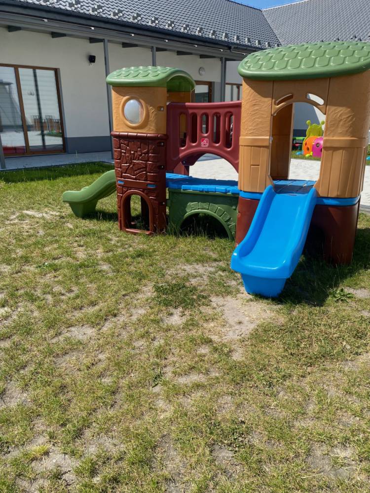 Dysponujemy dwiema, odpowiadającymi potrzebom najmłodszych, przestronnymi salami, a także bezpiecznymi placami zabaw.